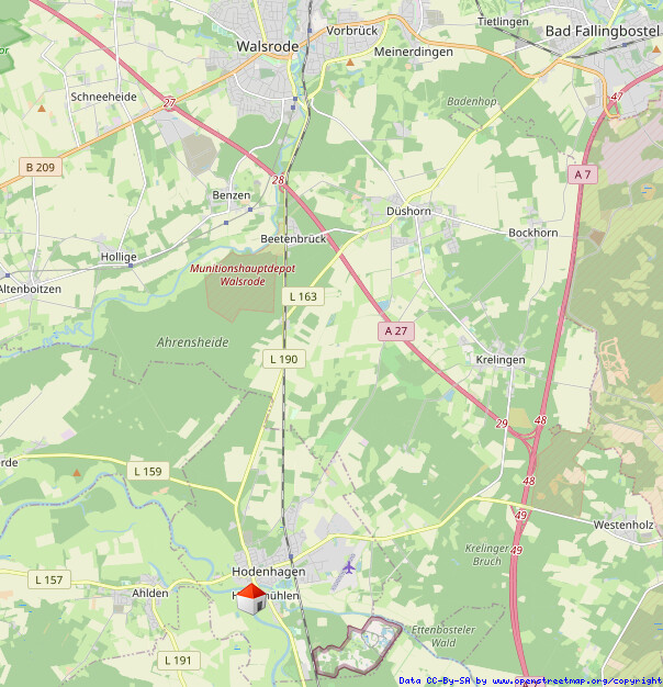 Der Ort bietet eine optimale Verkehrsanbindung über das Walsroder Dreieck (BAB 7 und BAB 27) nach Hamburg (ca. 100 km), Bremen (ca. 60 km) und Hannover (ca. 50 km).