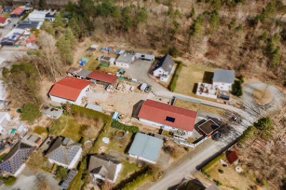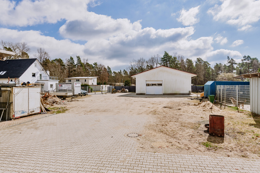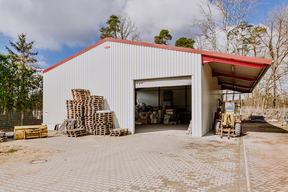 Zwei separate Zufahrten – eine direkte Zufahrt zum Hauptgebäude mit zwei Carport-Stellplätzen und ein gemeinschaftlich nutzbarer Weg, der direkten Zugang zum Hinterhof mit den Hallen bietet – gewährleisten eine optimale Erreichbarkeit. Weitere Freiflächen und Abstellmöglichkeiten eröffnen zusätzliches Potenzial für den Bau weiterer Hallen, kleinerer Gebäude oder zusätzlicher Lagerräume.